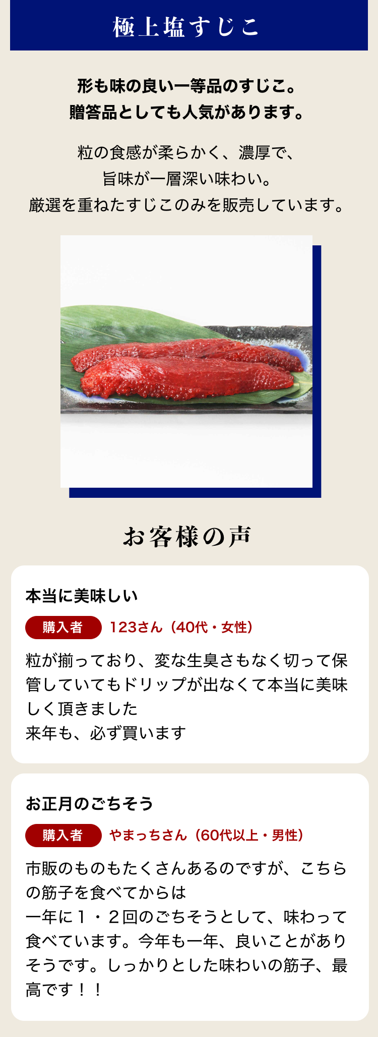 塩加減もちょうどよく甘塩でご飯にもお酒のあてにも最適です!昔懐かしい味を思い出しています。